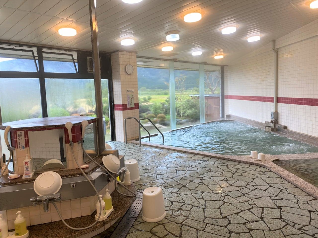 - 温泉泉質:(ナトリウムー塩化物温泉(等張性弱アルカリ性温泉))、温泉効能:きりきず、末梢循環障害、冷え性、うつ状態、皮膚乾燥症