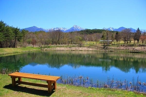 八ヶ岳自然文化園・ペンションビレッジに隣接した小さな湖。実は田んぼのための溜め池ですが、八ヶ岳連峰が一望できる絶好の写真撮影ポイントとして人気があります。
