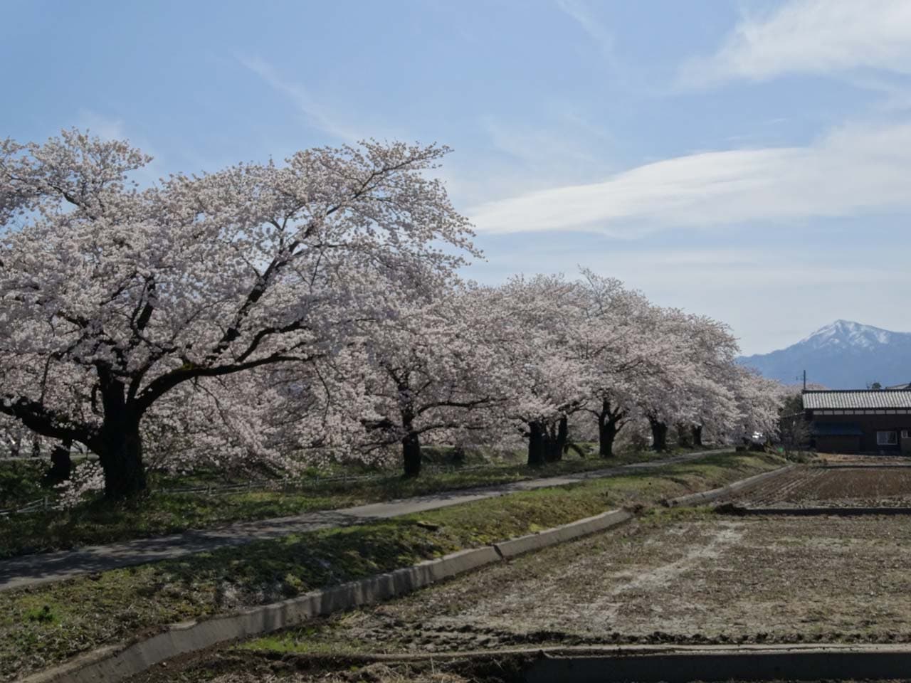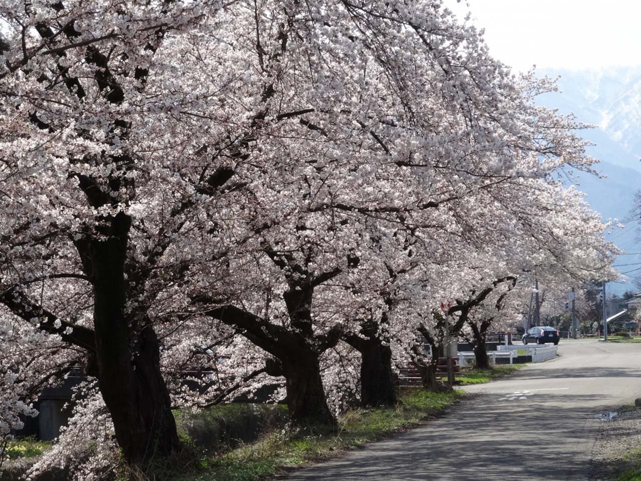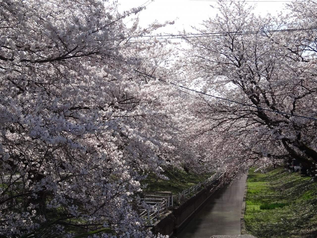 新江用水路の道路沿い約4.6kmにわたってソメイヨシノ550本が咲き誇ります。