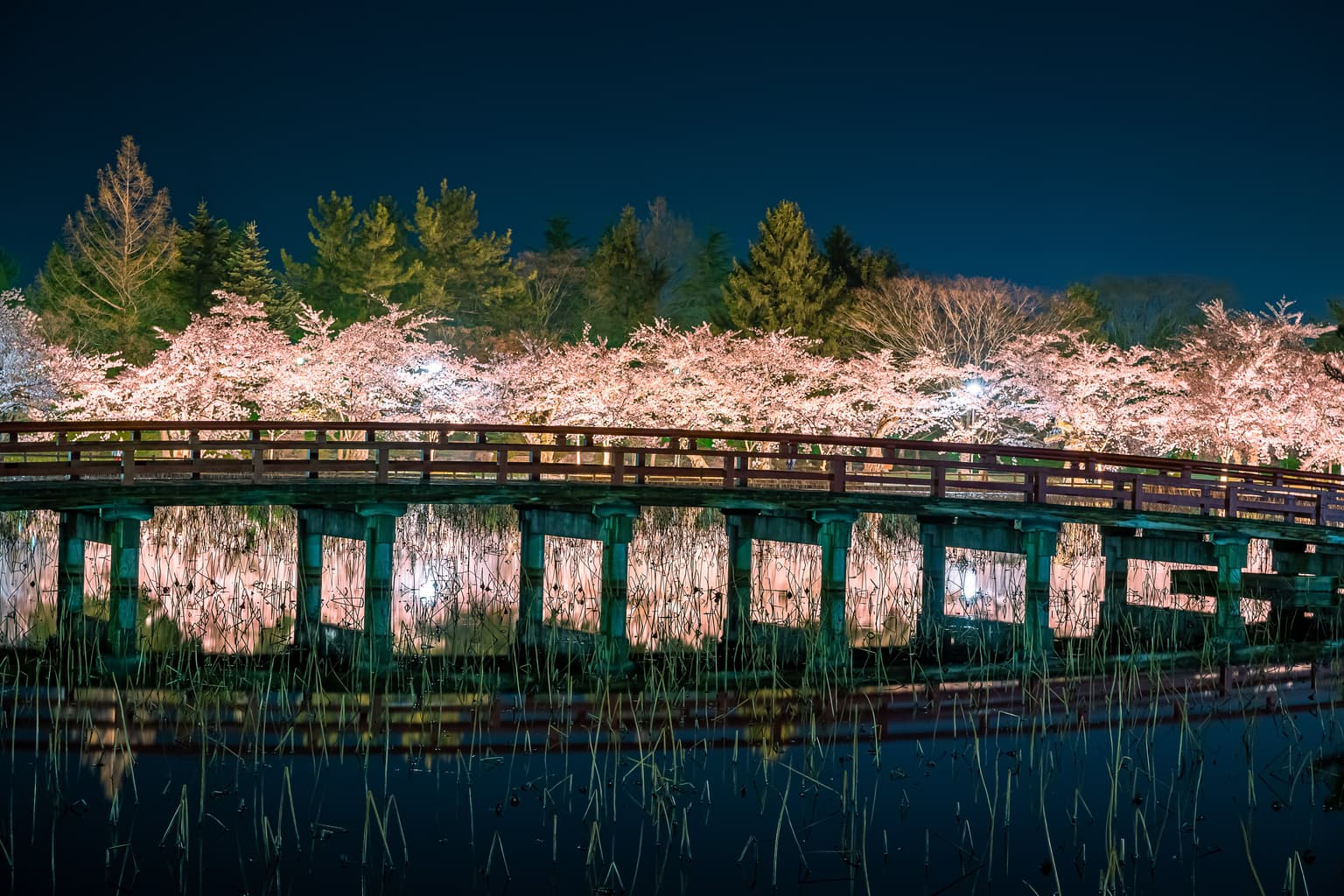 毎年4月中旬から5月上旬に開催される平川さくらまつりは、平川市内を美しく彩る桜並木を楽しめる恒例行事です。約2キロにわたる桜並木が見事に咲き誇り、その風景は訪れる人々に春の訪れを感じさせます。お花見にぴったりなこの時期、会場周辺ではさまざまなイベントや催しが開催され、地域の魅力を存分に味わうことができます。また、平川さくらまつり期間中は日没から21時まで桜並木が幻想的にライトアップされ、夜桜もご覧になれます。