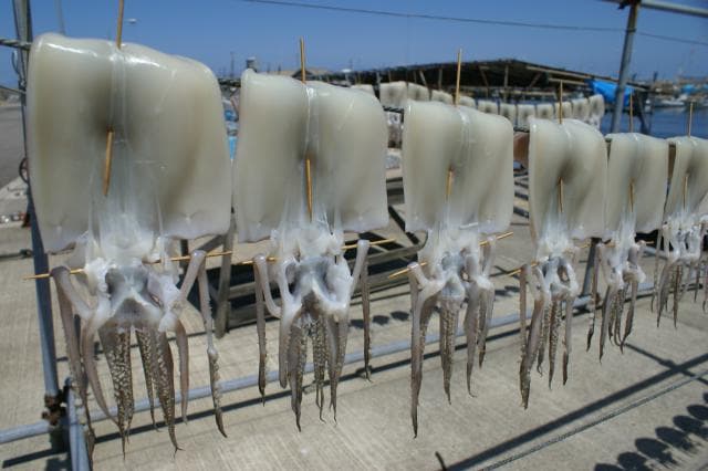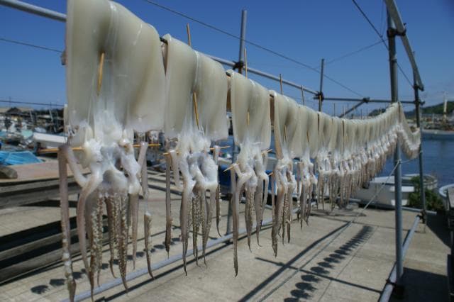県境の港町、鼠ヶ関特産のイカの一夜干し。とれたてのイカをひらき、一晩浜風で干したもの。さっと焼き、熱いうちにしょう油かマヨネーズをつけて…。酒のつまみに最適です!