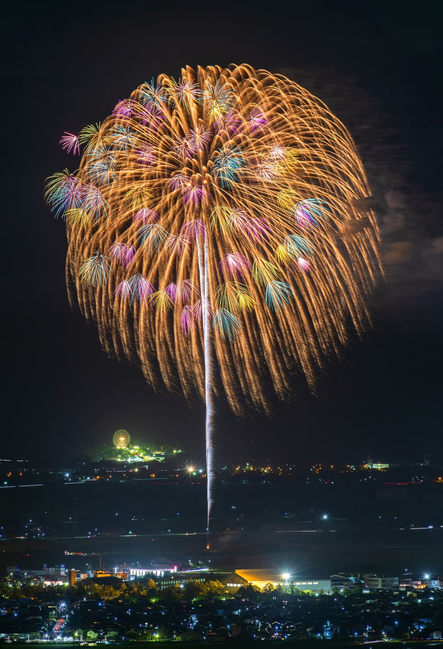 五泉の夏の風物詩である「五泉ひゃんで花火大会」。五泉が「ひゃんで(五泉の方言で「すごく」「とても」という意味)賑わいあるまちになるように」と願って開催され、地域の方たちからの協賛による市民参加型の花火大会です。家族や友人への思いをのせたメッセージと共に打ち上がる花火に、会場となる早出川三本木大橋の河川敷では大きな歓声が上がります。ぜひ賑わう会場へ足を運び、五泉の夜空を彩る大輪の花々をお楽しみください。