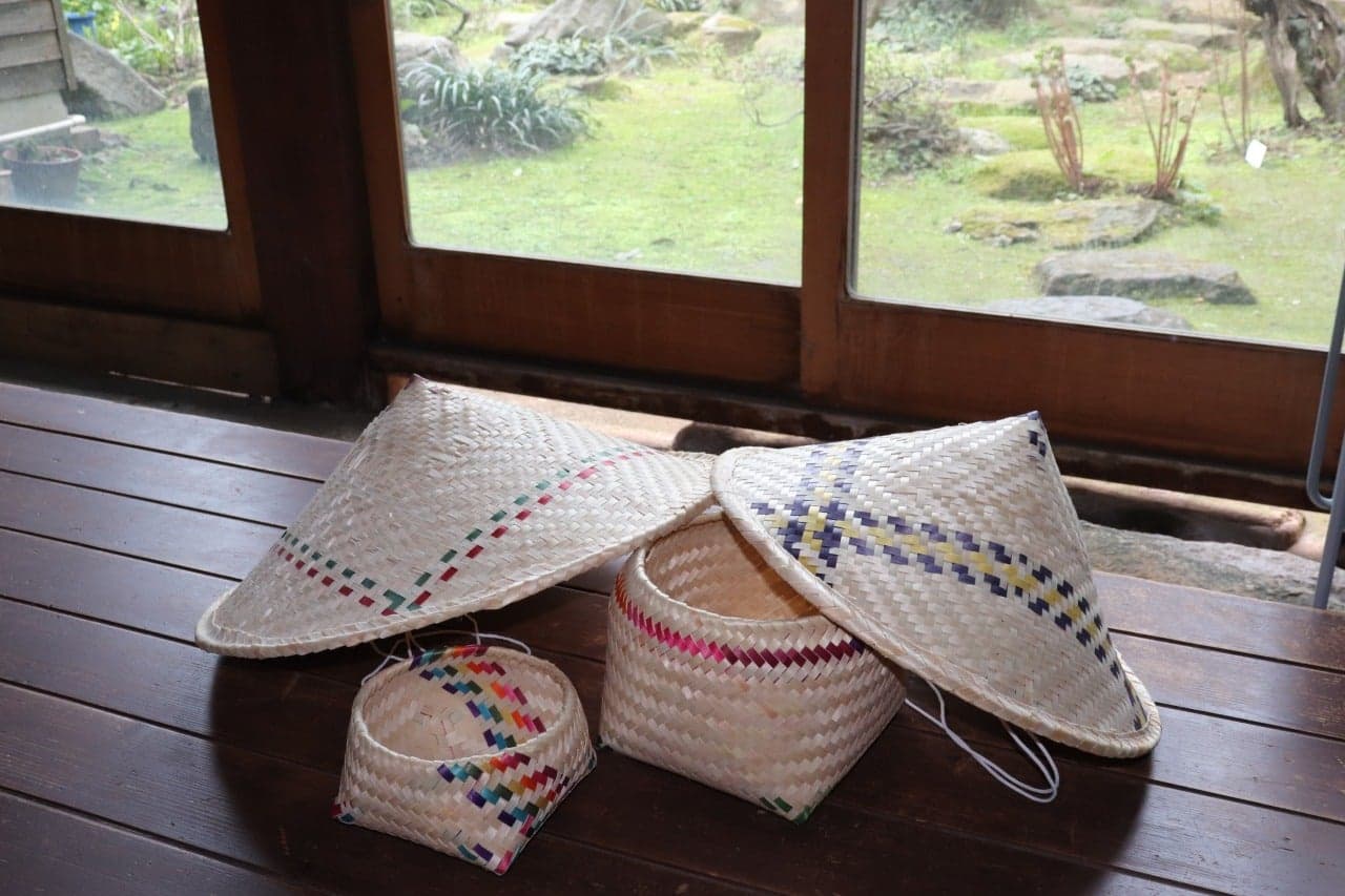 深瀬新町の工房では、笠や小物、カゴなど檜細工の販売から制作体験、古い笠の修理も行っています。