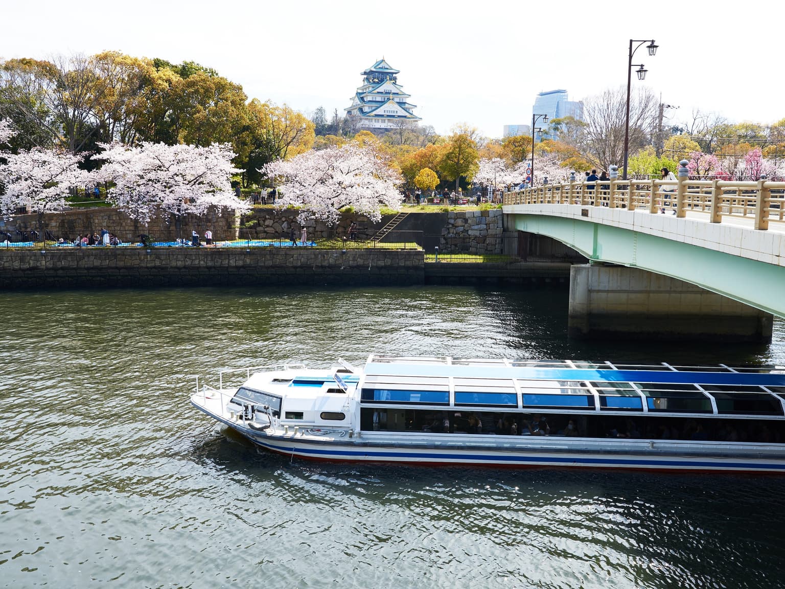 大阪城公園内にある「大阪城港」を出航し、途中「八軒家浜船着場(天満橋)」に寄港しながら、