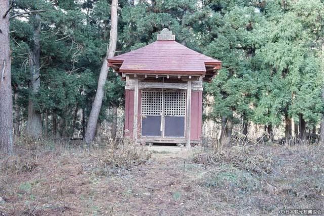 ・観音堂(県指定文化財)…桁行3間、梁間3間、宝形造、銅板葺(もと、茅葺)。四方に縁廂(えんひさし)を巡らし、外壁でおおっているので、外観的には方五間堂に見えます。