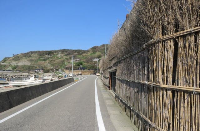 間垣とは高さ3m~5mのニガ竹(メダケ)や真竹を隙間なく並べた垣根で、輪島市の大沢町と上大沢町に見られる。冬の強烈な季節風から家屋を守り、夏は西日をさえぎるなどの効果があり、素朴な生活の知恵と奥能登の佇まいを感じることが出来る。毎年10月中旬から11月にかけて修復される。平成27年NHK連続テレビ小説「まれ」ゆかりの地でもある。