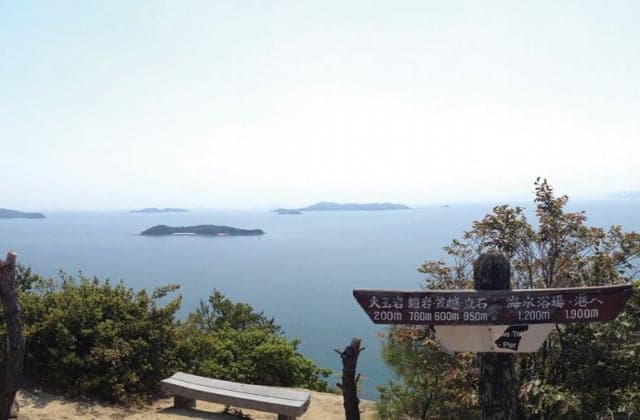 オリエンテーリングのパーマネントコースを一周する途中にある標高150mの展望台で、国の名勝地にも指定されています。開龍寺、鎧岩などと並んで白石島の見どころのひとつ。高山展望台に向かう道はハイキングコースなので、歩きやすい靴と服装がおすすめです。途中に売店等がないので、水分補給ができるよう飲み物を準備するのがベターです。