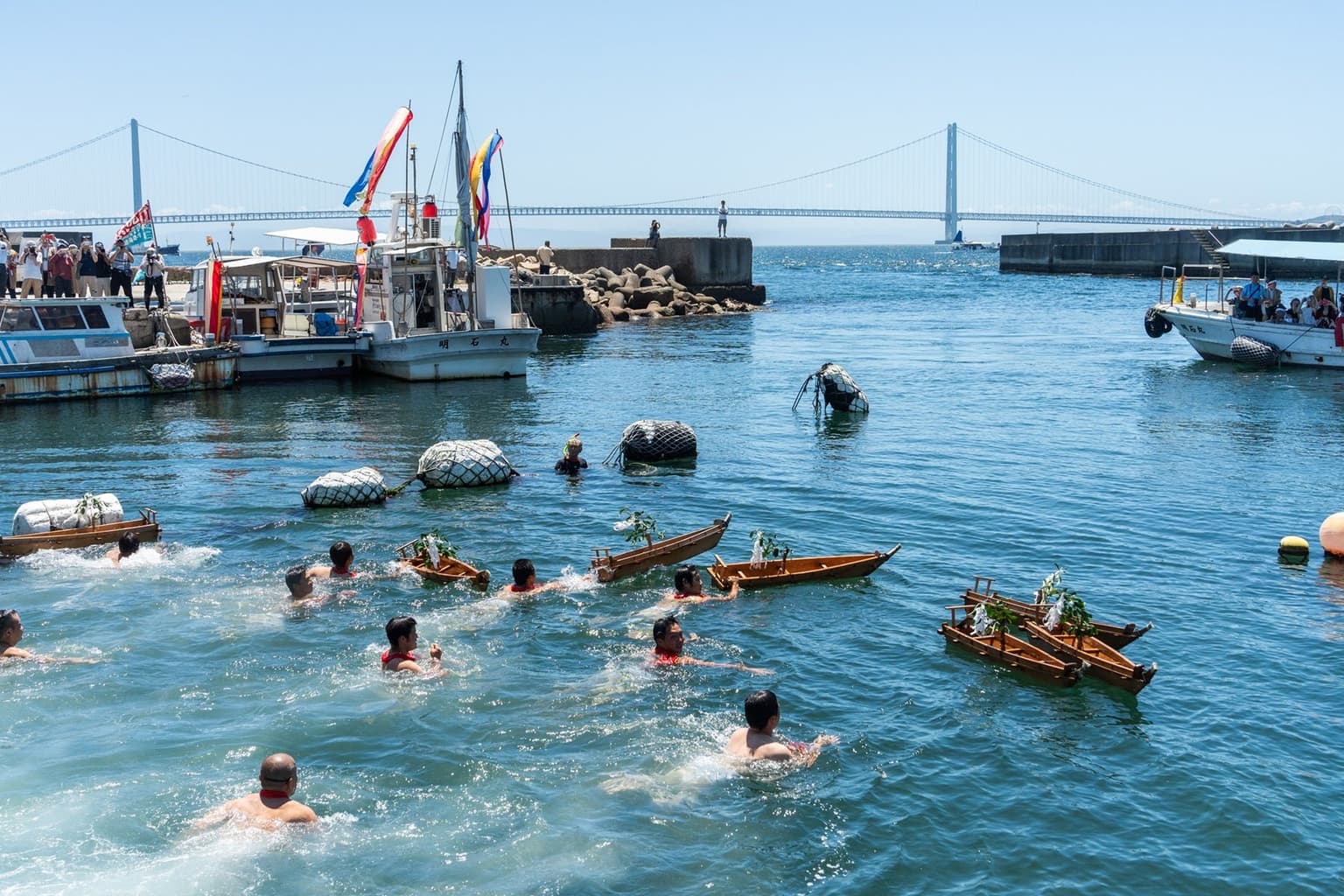 おしゃたか舟神事は明石の夏の風物詩として知られています。海難防止と豊漁を願って催行される明石最古の伝承行事、海上神事で市無形民俗文化財に指定されています。「おしゃたか」とは、神様が「おじゃったか(おいでになったか)」という方言です。