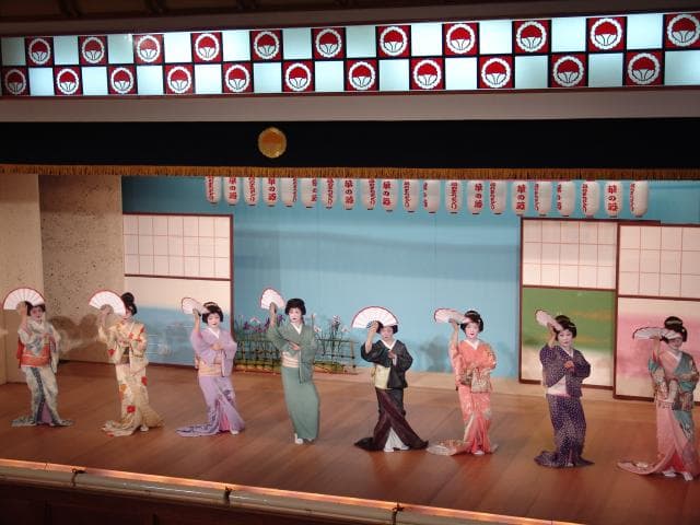 熱海芸妓連歌舞練場「芸妓見番」を開放し、皆さんに芸妓連の踊りを観賞頂こうというもので、普段はなかなか見ることのできないプロの踊りをご堪能頂けます。三味線等の演奏、踊りの息の合った公演をどうぞご覧下さい。予約の方が優先となりますので、見学希望の方は事前にお問合せ、予約をお願いします。