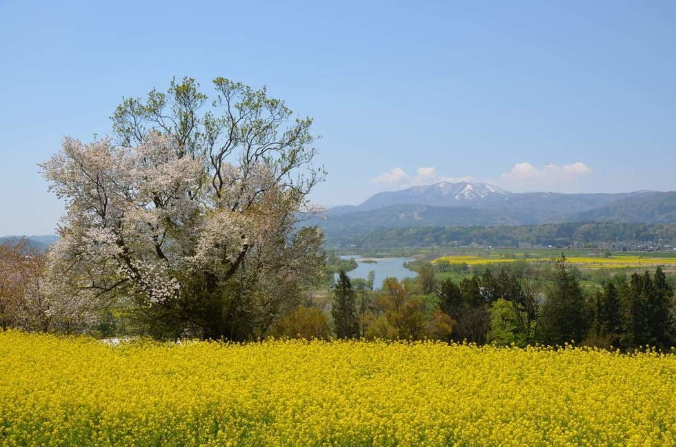 千曲川東岸の小高い丘の中腹に位置しているので、眼下に千曲川、その先に残雪を抱く関田山脈を眺望できる絶景スポットとしても人気があります。