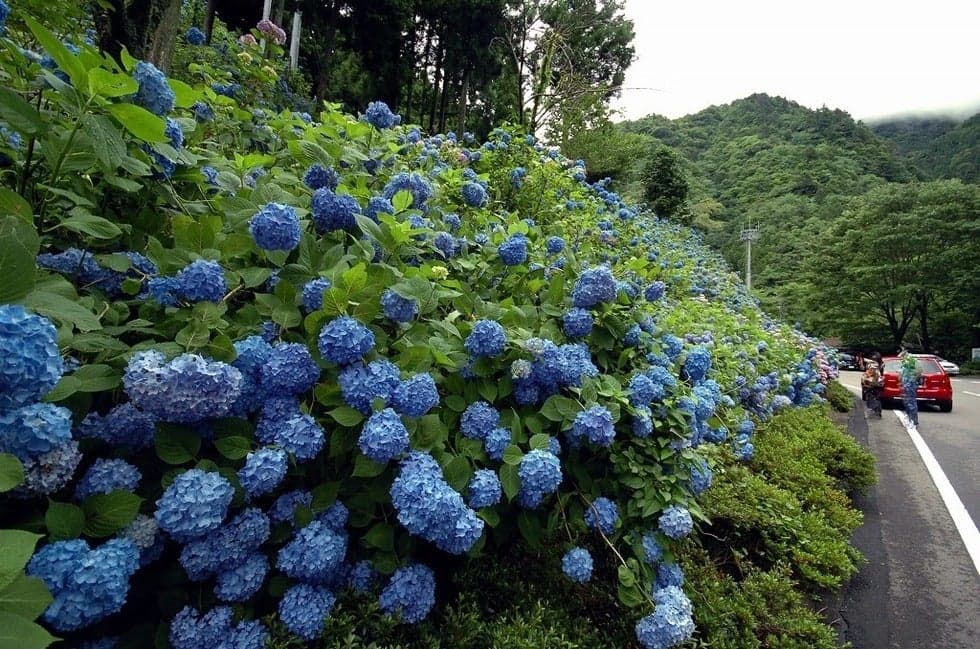 岐阜県関市国道256号から県道52号線に続く、あじさいロード。板取川沿いに約24kmに渡り、あじさいが咲き連ねる光景は圧巻です!「日本の道百選」にも選ばれており、このあじさいロードを経由して「あじさい園」や「21世紀の森公園」などのあじさいの名所に行くことができます。約7万株のあじさいをご堪能ください。あじさいの季節以外も、信号のない清流沿いの道で、絶景を眺めながらのサイクリングも楽しめます。