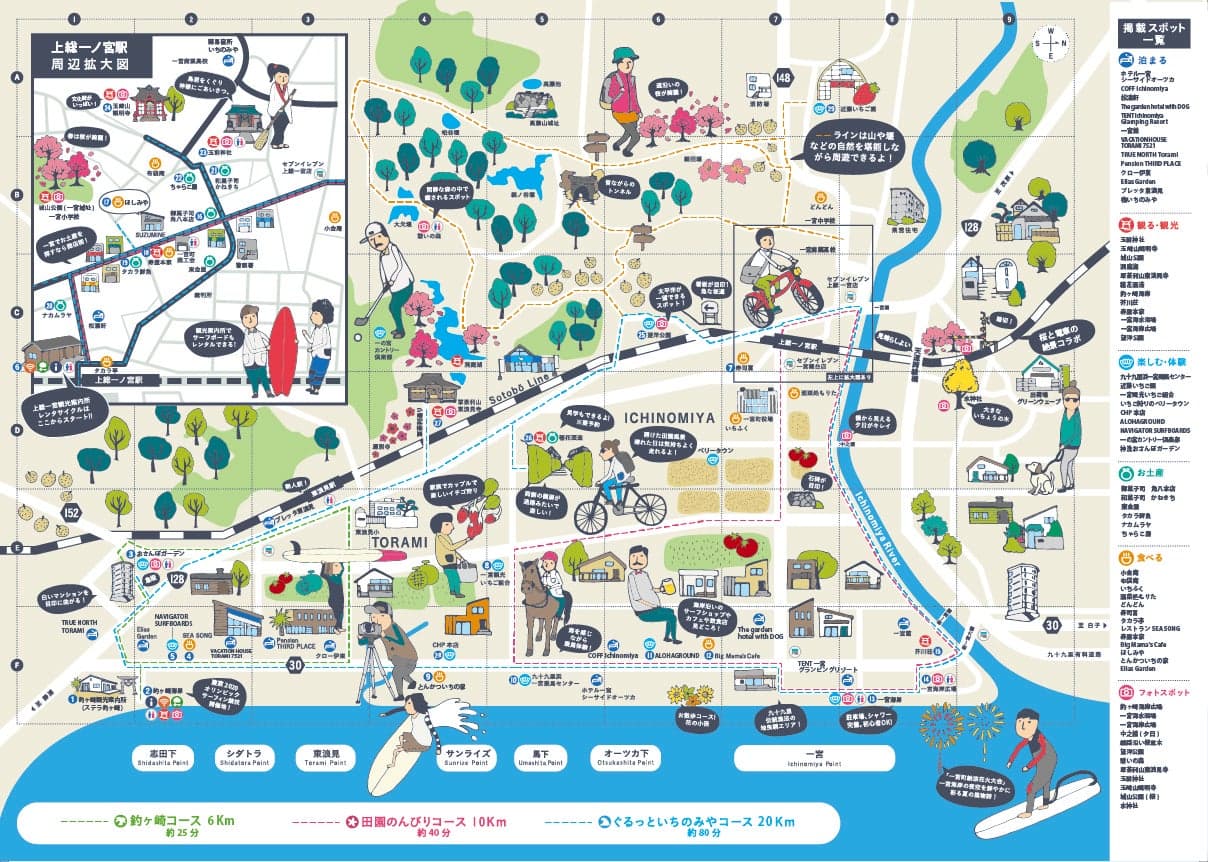 - 上総一宮観光案内所:JR外房線 上総一ノ宮駅からすぐ 釣ヶ崎観光案内所:JR外房線 上総一ノ宮駅から車で15分