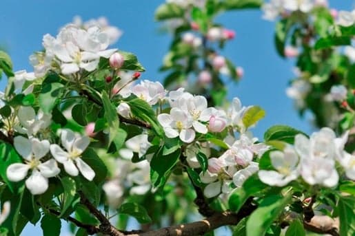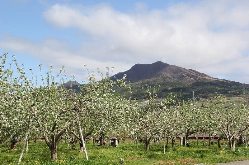 一面に咲くりんごの花は、白い小さなかわいい花です。