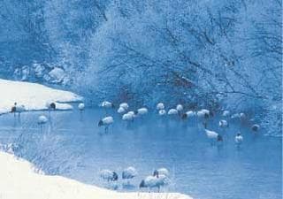 タンチョウのねぐらを観察、撮影できるポイント。タンチョウの数は季節により変わります。真冬の早朝は特に人気が高く、国内外から愛好家が訪れます。