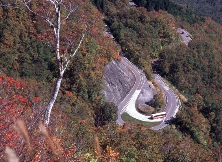 白山白川郷ホワイトロードは世界遺産白川郷から石川県白山市をつなぐ、全長33.3Kmの山岳有料道路。最高地点の三方岩駐車場(標高1,455m)から登山道を約50分ほど登った山頂からは白山・立山・穂高の各連峰が展望できます。日本の滝百選にも選ばれた「姥ヶ滝」をはじめとする大小7つの滝が織りなす渓谷美、樹齢約300年ブナの原生林に直接触れることもできます。山岳道路のため落石の危険がありますので、駐車場以外では車を停めないでください。