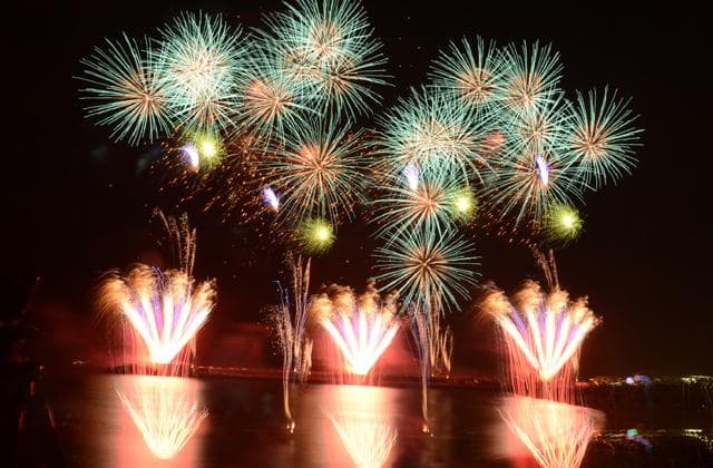 世界的なデザイナーのコシノジュンコ氏が、今までにない新しい花火をイメージした「デザイン花火」が宜野湾市の夜空を鮮やかに彩ります。コンピューター制御により、音楽や音響効果と競演する特別なショーです。沖縄音楽をベースに、テンポ溢れる流行のメロディー、勇壮でスケール感たっぷりのクラッシックなども織り交ざったオリジナルちゃんぷるー音楽に合わせて約1万発もの花火が夜空を彩ります。