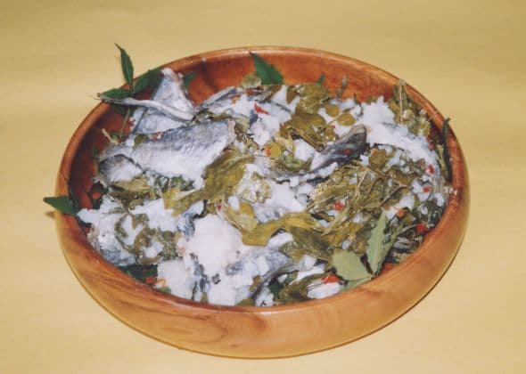能登の夏祭りの代表的な料理で、5月頃、塩漬けのアジとご飯、薫り付けの山椒の葉と共に2~3ヶ月間漬け込み、ちょうど8月前後の夏祭りの時期に食べ頃になり、発酵した独特な薫りはまさに「クセになる味」。よそ行きと言うよりは、能登の家々に伝わる味ですが、民宿などでも食べられる所もあります。