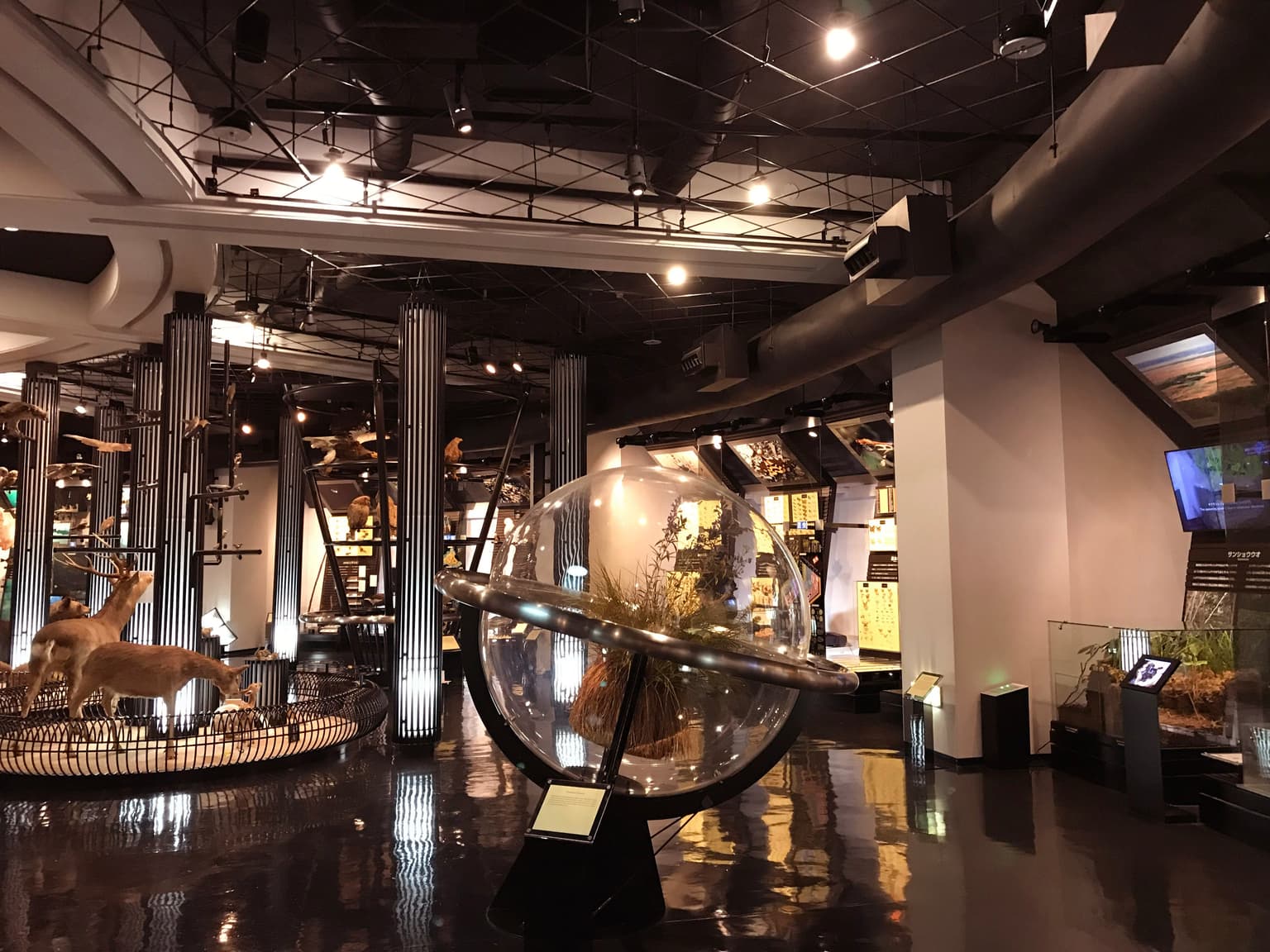 春採湖畔にある総合博物館。そのユニークな外観がひときわ人目を引く。 館内には氷河期の使者マンモスの巨大な骨格標本、“釧路の大地”“釧路の生物”“釧路の海”“釧路の先史時代”“釧路の近世と近代”と時代を追った展示が続き、4階では“サコㇿぺの人びと”と“タンチョウ”について展示されている。
