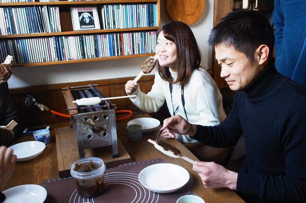 焚火屋では、作って食べる体験ができます。鉄器でつくる一丁焼きのたい焼き、飛騨名産のあぶらえ(エゴマ)の五平餅、自家焙煎コーヒー、パリパリもなかを作る体験ができます。普段作って食べることができない体験を、ご家族で旅の思い出作りにいかがですか。すぐ隣に、とんぼ玉づくり体験ができる、Kazari があるので、とんぼ玉づくりもご一緒にいかがですか?