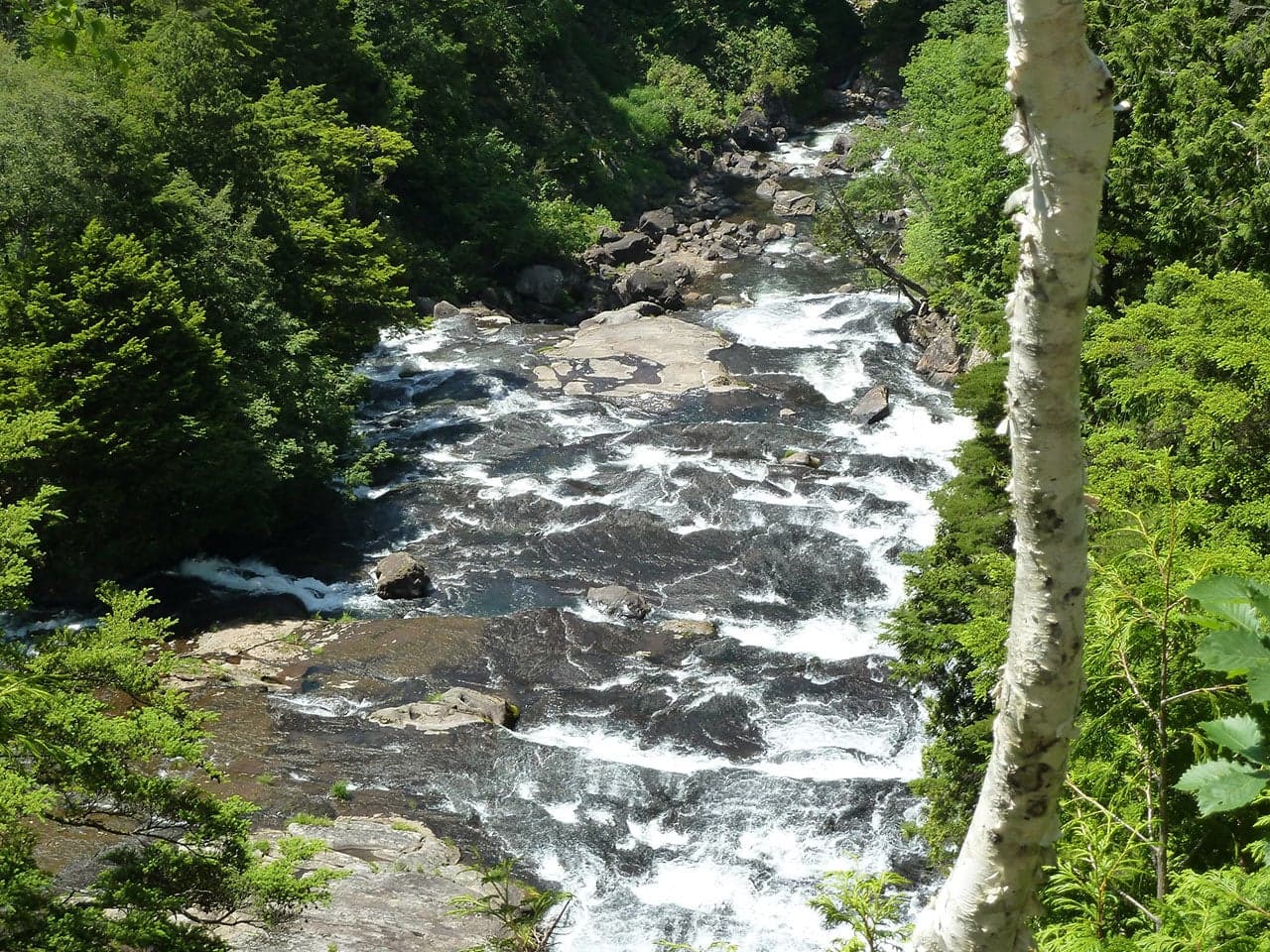 長さ500mにも及ぶ花崗岩の一枚岩の上を水が流れる様は見事。三条の滝とあわせて尾瀬ルートに欠かせません。