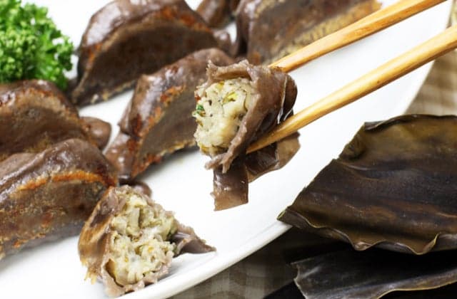 日高昆布を餃子の皮と具に混ぜ、美味しくヘルシーをコンセプトに開発された餃子です。
