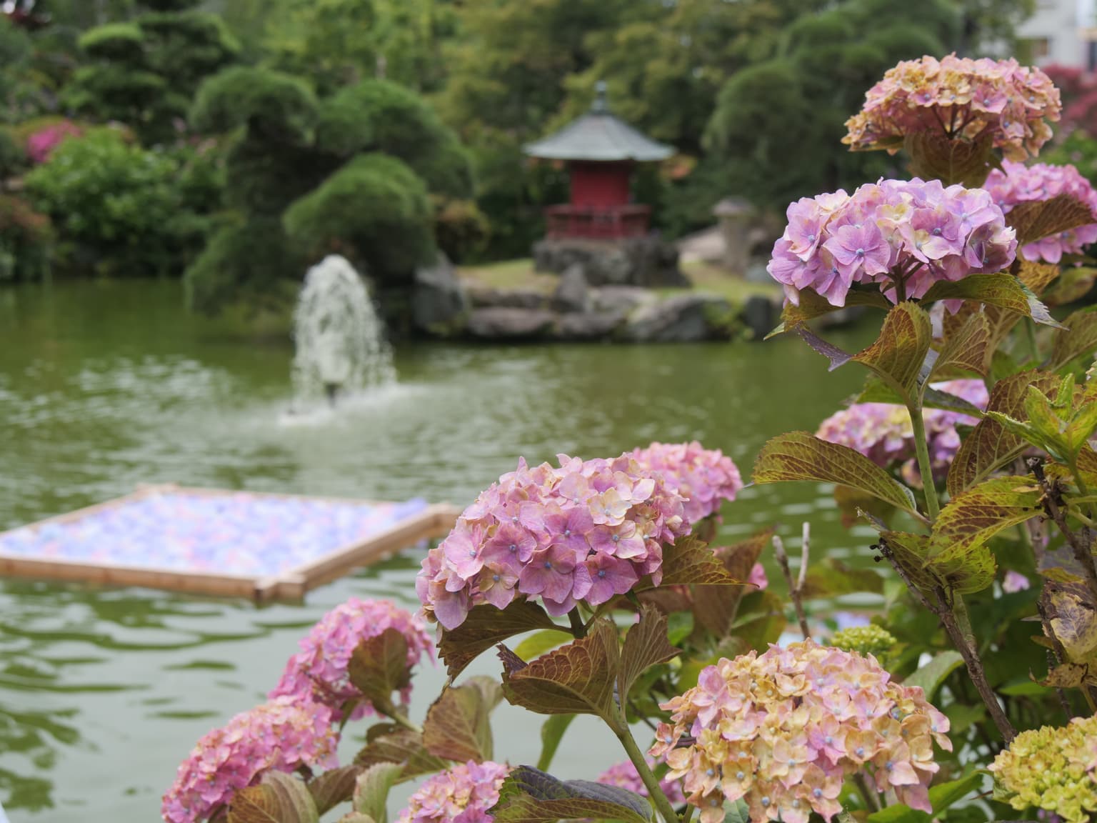 純日本庭園の苑内には、約100種6000株のあじさいが咲き誇ります