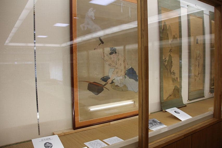 郷土が生んだ先人達を紹介する1階コーナーと、ありし日の鎧潟をしのび、米づくりの里の農具、民具を展示する2階コーナーがあります。