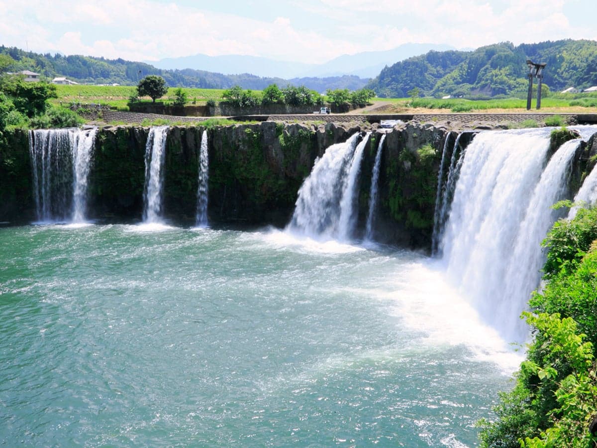 「田園地帯に突如現れる」ことからとても珍しい滝として知られ、「日本の滝100選」にも選ばれています。