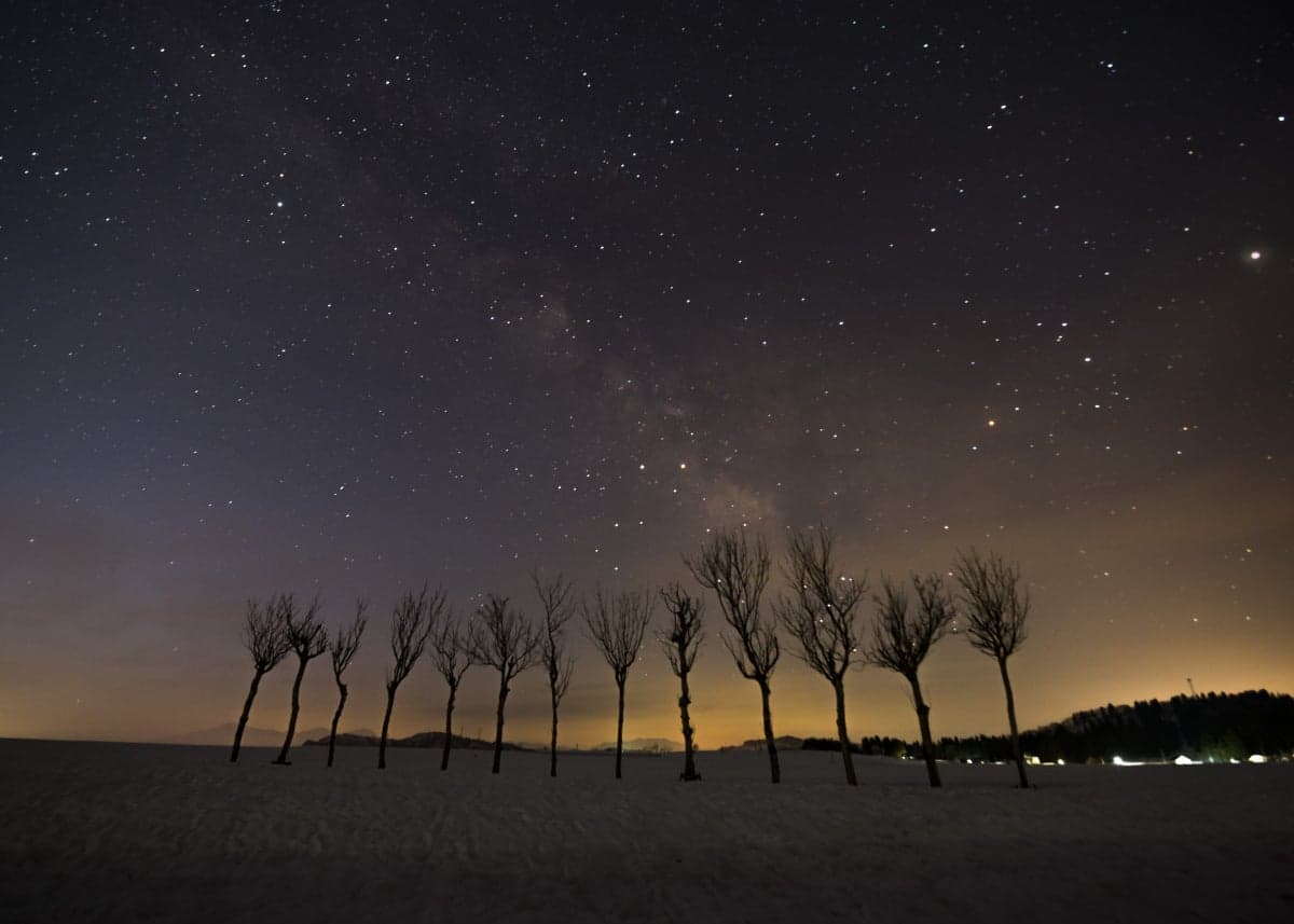 朝焼けや星空、雪化粧など季節や周りの環境によって、はさ木は表情を変えます。