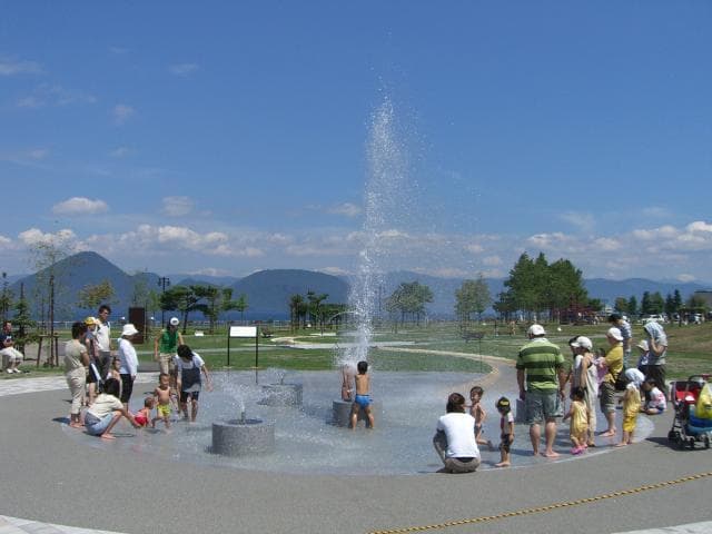 駐車場、子供向け遊具、噴水広場完備 夏場の水遊びに最適です。