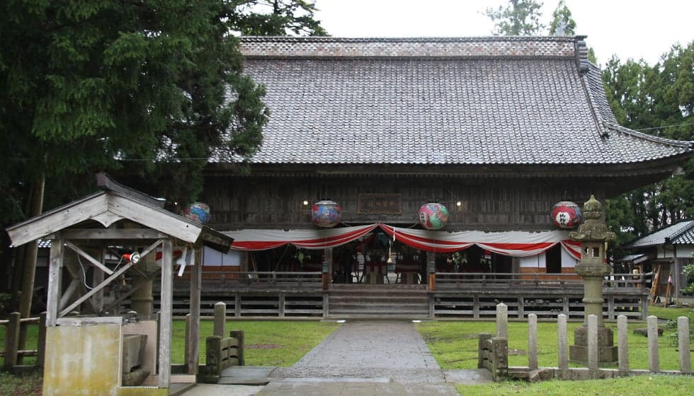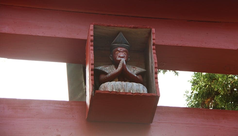 地元では“山王さん”と呼ばれ親しまれている神社。配流となった順徳上皇のために、1226年、随臣・池清範が近江の「日吉大社」を勧請したのが起こりとされます。「見ざる・言わざる・聞かざる」の三猿像など、いたるところに木製や石像の「神使いの猿」がいます。4月の例祭は3日間におよぶ大規模なもの。