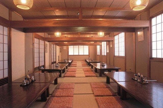 和風レストラン。落ち着いた店内で、土地の海山の幸をいかした料理が味わえる。地元の野菜、魚介類を鉄鍋で煮るわだつみや、金目鯛の煮付け、伊勢えびの味噌汁などがお楽しみいただけます。
