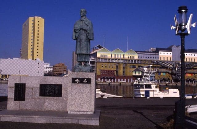 石川啄木が釧路駅におり立ったのは、明治41年1月21日夜半であった。啄木像は本郷新の制作で当時の釧路駅ゆかりの地に建立。現在は港文館前に移設している。