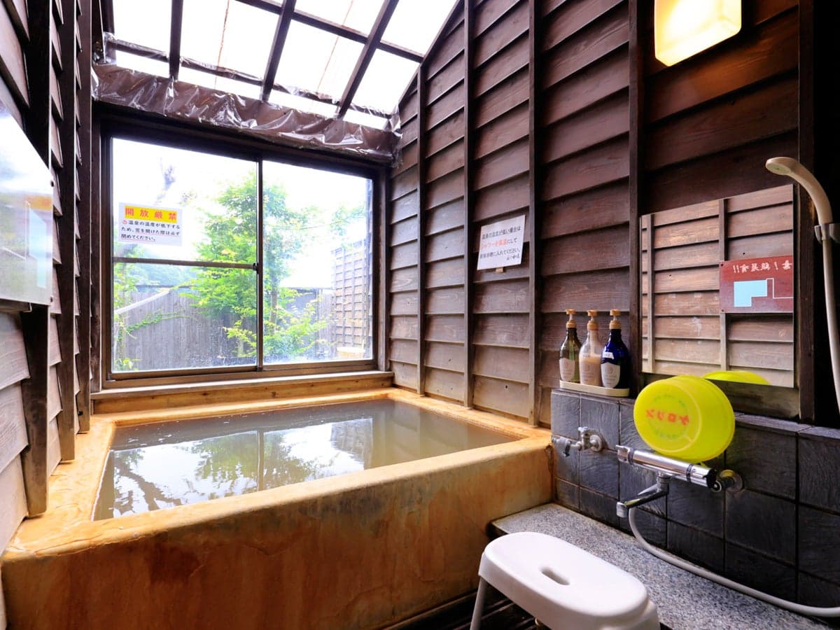 宿泊施設でありながら、日帰りでの入浴や食事も楽しめるのが魅力。温泉は、全国でも珍しい「底入れ底出し方式」を採用しており、湯船の底から温泉を入れているので、湧出して空気に触れないままの新鮮な湯に浸かることができます。源泉温度は約45度ですが、内湯は39~40度、露天は30度。それぞれ湯温が異なるため、交替に浸かることで体が温まるのを実感してみてください(露天は冬季休業)。