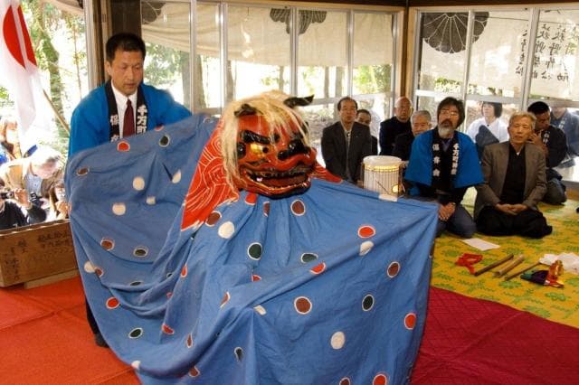 獅子神楽悪魔を笑わせて鎮魂退散せしめる。