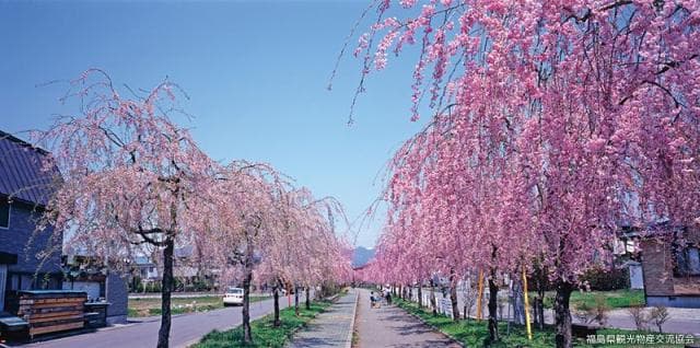 旧国鉄日中線跡(約3km)を走るコースです。しだれ桜のシーズン(4月中)は歩行者が多く危険なためお勧めしません。