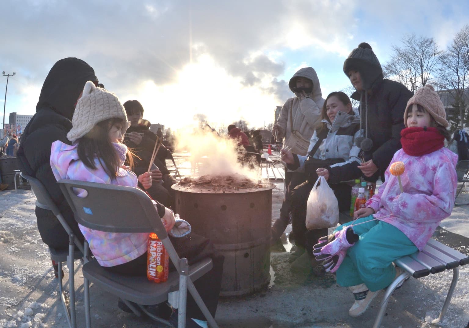 苫小牧名物のドラム缶の上で焼くジンギスカン「しばれ焼き」など、苫小牧の名物やおまつりならではの味覚を楽しむことができます。その他にも子どもたちに人気の雪で製作された大型の「ちびっこすべり台」のほか、伝統芸能や歌謡ステージなどが行われ、子どもから大人まで楽しめる冬の一大イベントとなっております。