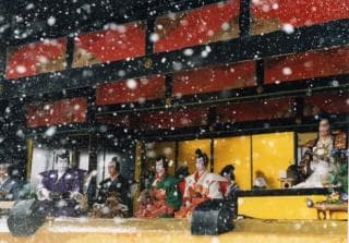 日枝神社の奉納行事で、270年以上前から続けられている郷土芸能。農民の間に伝承され、農民の手によって演ぜられているもので、村芝居の規模としては全国でもまれな大きいものです。境内の雪を踏み固めて観劇する風俗など、日本演劇史上貴重なものとされています。
