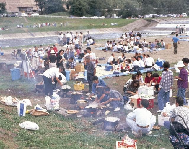 仲間や家族と一緒に河原に集い、里芋、牛肉、こんにゃく、長ねぎを醤油と日本酒で味付けした鍋を囲む文化があり、主に山形市の馬見ヶ崎河原で行われています。