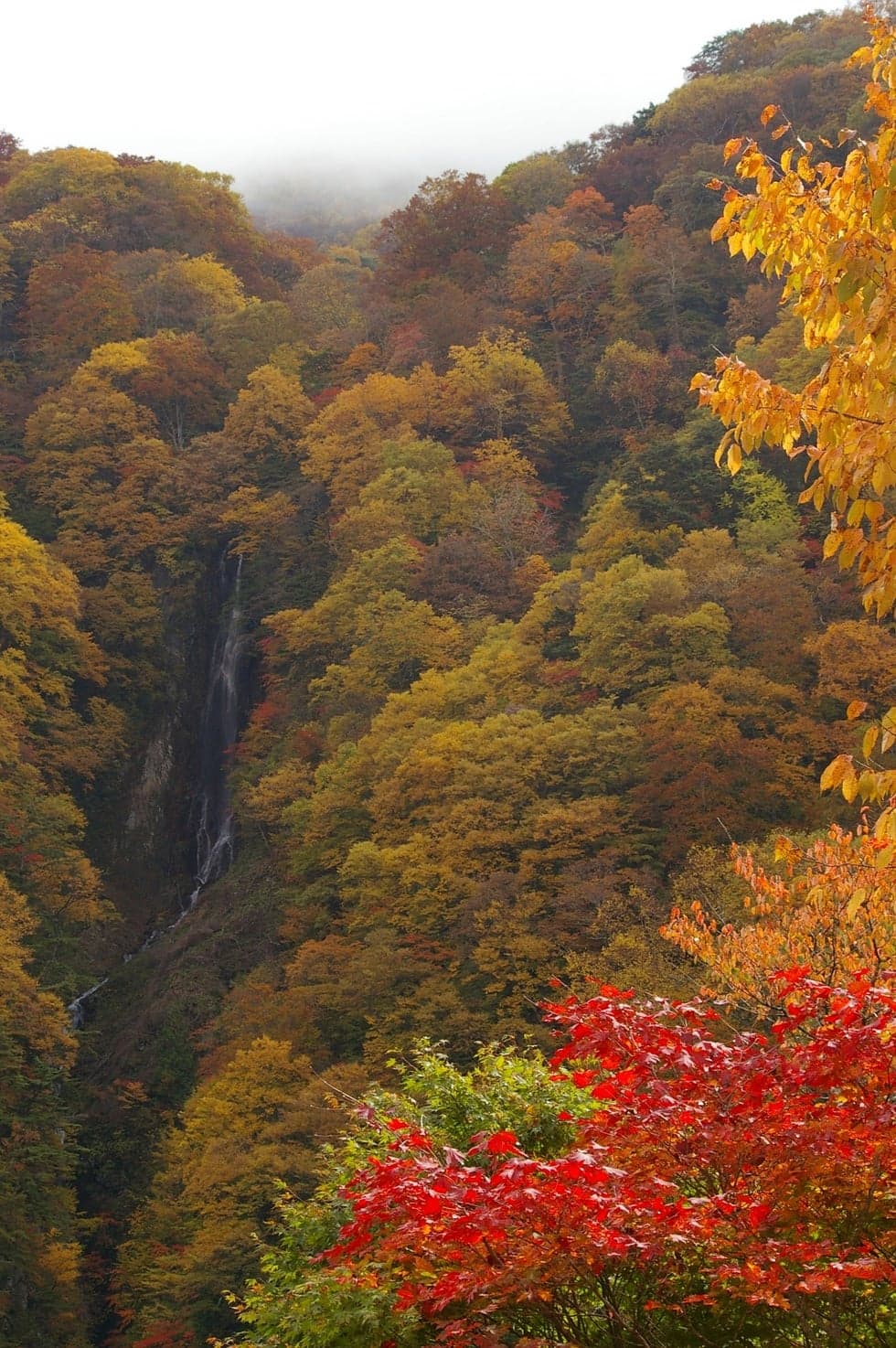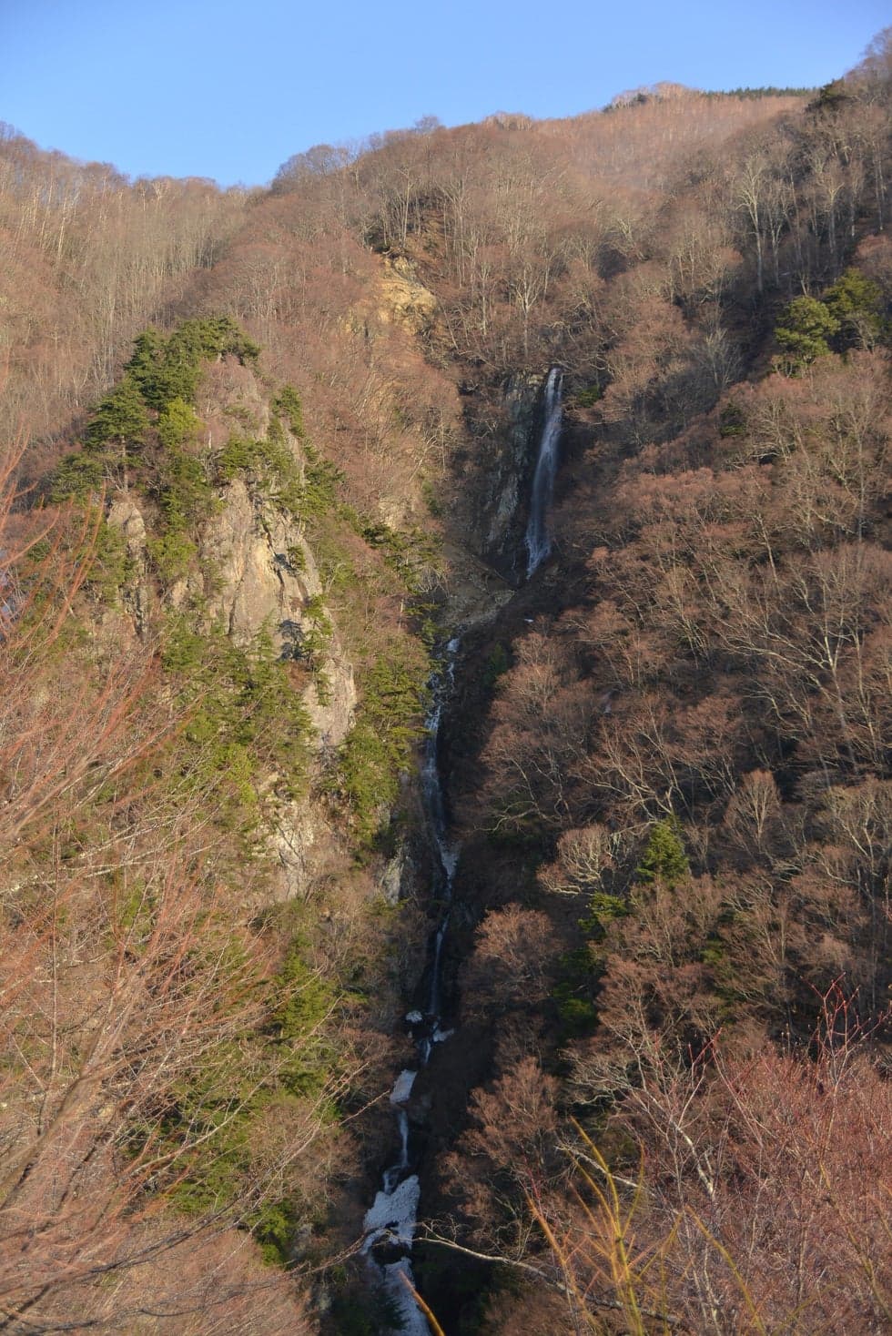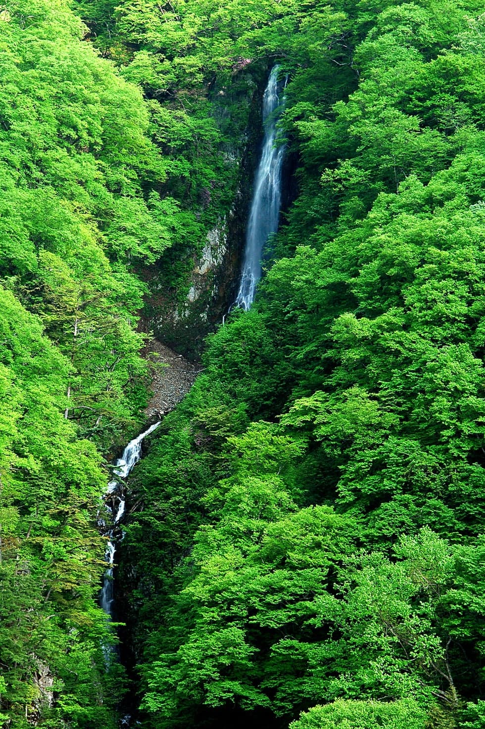 八つの滝壺を持つことから八滝と称されている。落差180mの滝を展望台から一望でき、落ちる景色は絵画に白糸が引かれたかのよう。