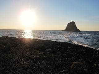 島の西海岸にある無縁島を目の前にした海浜。ホヤ石の滝・ホヤ石がある。