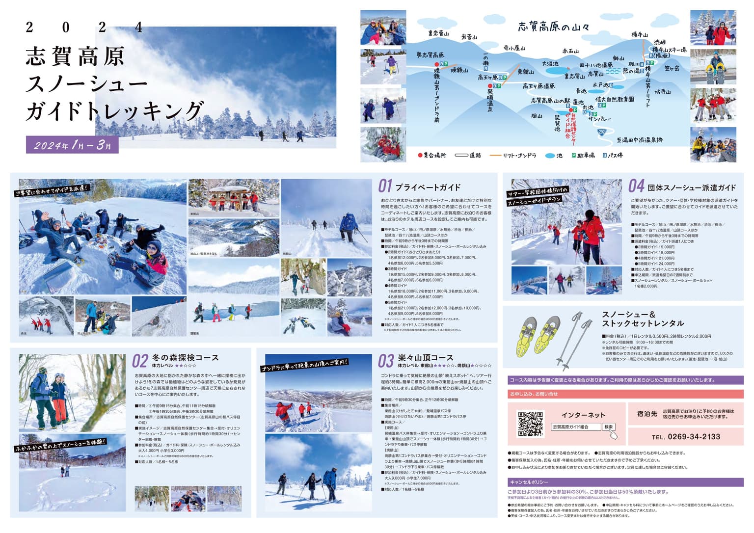 - 1月~5月 コースによって日程が違いますので、HPにてご確認ください。 志賀高原ガイド組合では、1月~3月まで公認ガイドによるスノーシューツアーをしています。 今年は4・5月も雪がある限り春雪ツアーを!