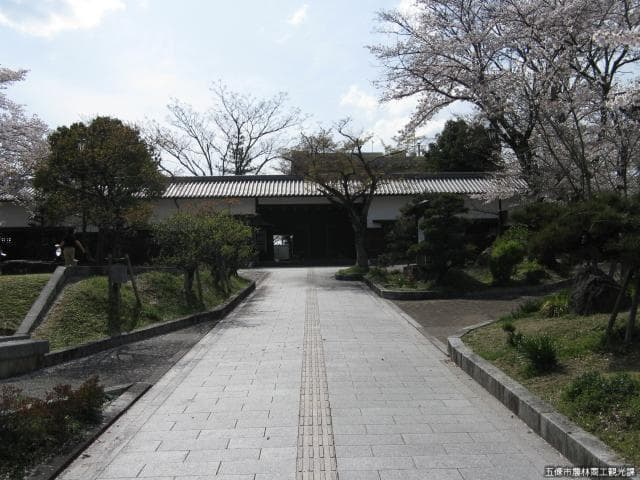 この資料館は、江戸末期には五條代官所の長屋門だった建物です。現在の五條市役所のある場所に建っていたもとの代官所は、文久3年(1863)におこった天誅組大和義挙の際に焼き討ちにあい、元治元年(1864)10月、現在奈良地方裁判所五條支部のあるところに幕府があらたに代官所を立て直したのでした。 明治維新の後、代官所は五條県庁に引き継がれ、一時警察大屯所などに利用されていましたが、明治10年に五條区裁判所となり現在に至っています。 裁判所の改築の際、正門である長屋門と広場を五條市が譲り受け、広場を史跡公園、長屋門を民俗資料館として整備しました。しかし、長い間市民の憩いの場、学習の場として親しまれてきた資料館は、老朽化が進み閉館となっていました。 平成15年9月、明治維新のさきがけといわれる天誅組義挙から140年を迎えるにあたり、国のために己を捨てて尽くした若き志士たちを讃えるとともに、図らずもその犠牲となった人々を追悼し、わたしたちのまち五條市でおこった重大な史実を語り継ぐため、史跡公園及び長屋門を再整備しました。 長屋門は天誅組の足どりやゆかりの地などの資料が展示された資料館としてあらたにうまれかわり、五條市の歴史に触れていただけるほか、研修会等にもご利用いただけます。
