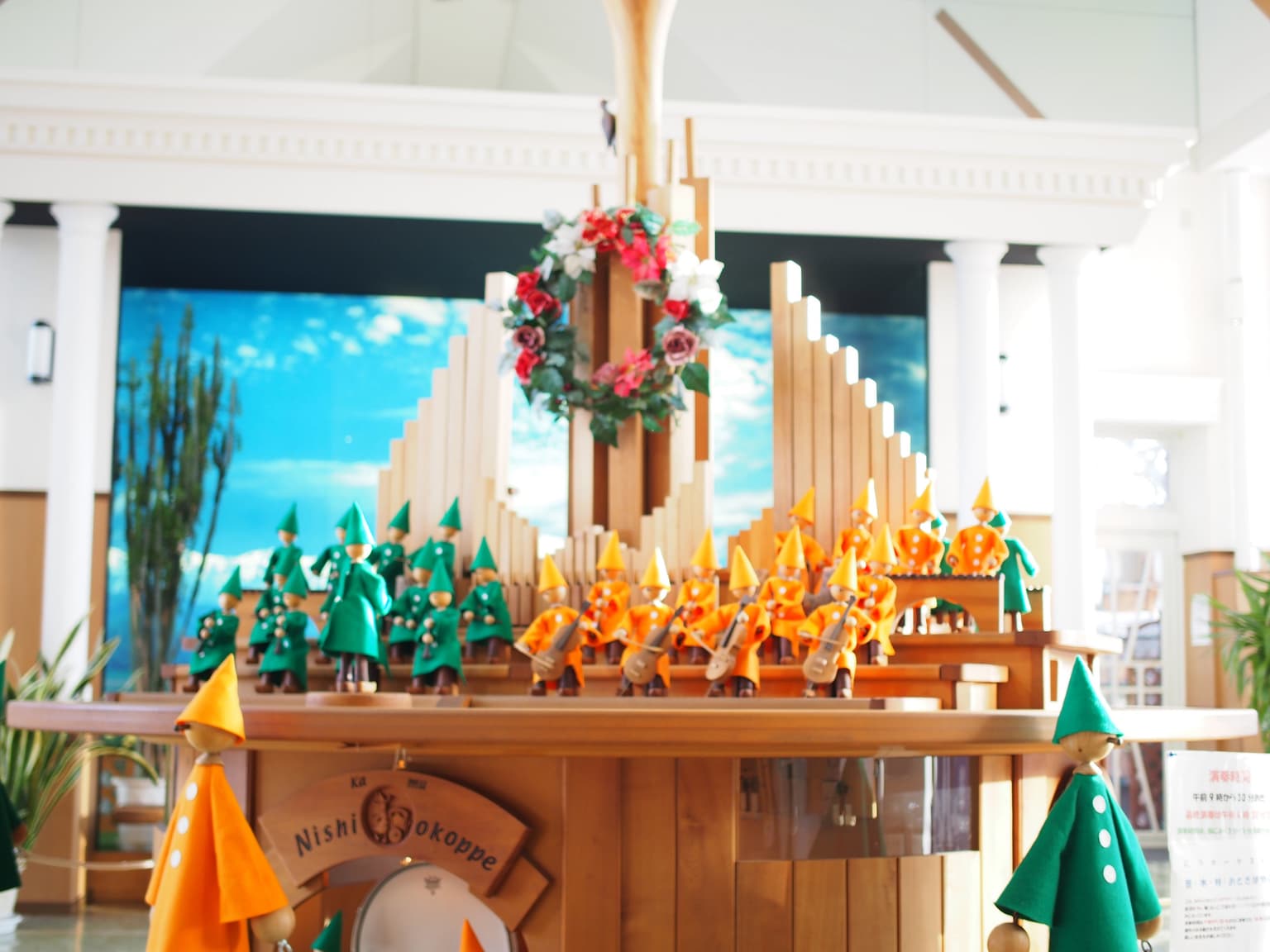 約6ヘクタールの面積を有するフラワーパークが併設しており、パーク内には早春から晩秋まで沢山の草花が季節を彩る毎日が見頃のナチュラルガーデン。道の駅館内には椿やジンチュウゲ、ミモザ等々の花々が観賞できる室内ガーデンや国内に1点だけという珍しいカラクリオルガン「音・木・林(オトギバヤシ)」が来館者を出迎えます。