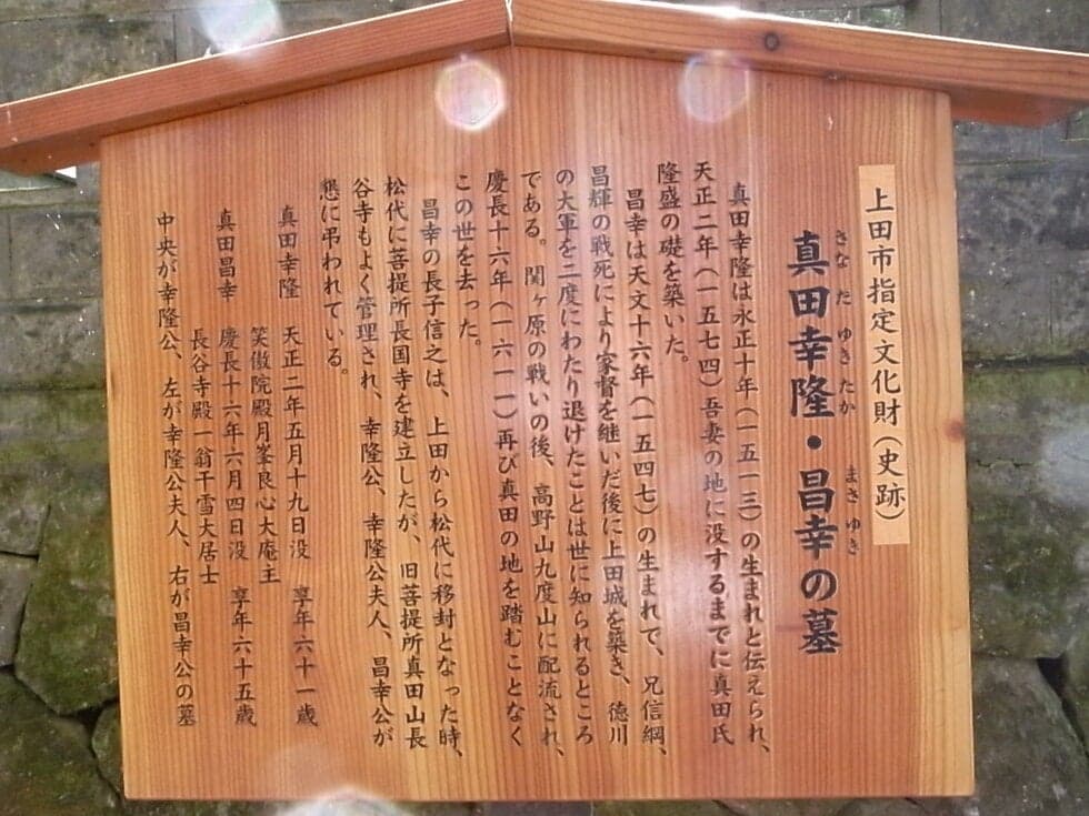 真田幸村の祖父・真田幸隆が開山した真田氏の菩提寺。境内には幸隆夫妻と、幸村の父・昌幸の墓があります。六文銭が刻まれた石門や、これを覆うように咲くシダレザクラも見どころです。