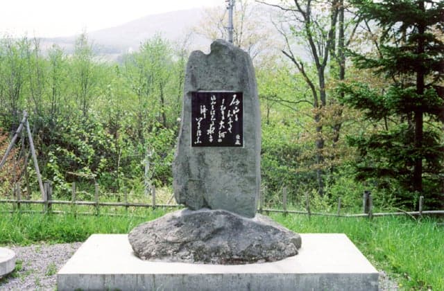 北空知の田園風景、蛇行した石狩川が見渡せる。鬼川俊蔵の歌碑有り。