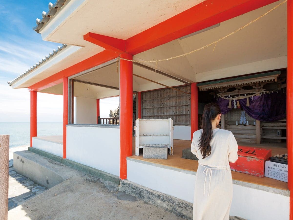 海中に石を投げ込んで願掛けをする「願い石・叶え岩」や、縁結びを象徴するモニュメント「結ゆい」など、幸せ要素が満載です。