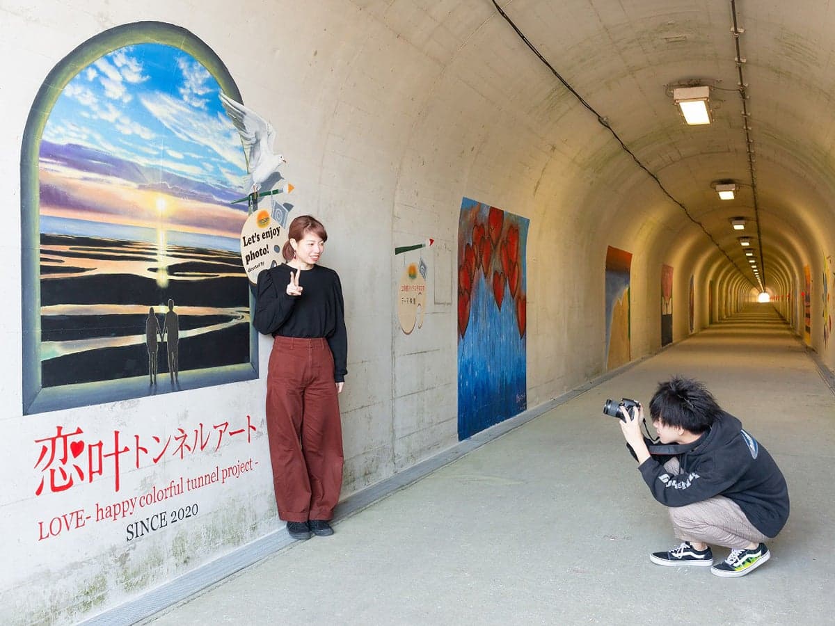 全長421mの人道トンネルに写真を撮って楽しめるアート作品が並んだ「恋叶トンネル」など“映える”フォトジェニックスポットも点在しています。