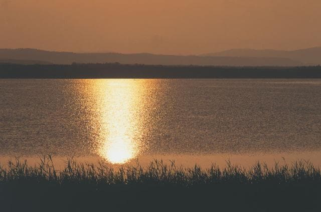 紋別市街から海岸線に沿って南へ約20km、オホーツク海に面した丘陵地に野鳥の楽園コムケ湖があります。ここには、オオハクチョウ、コハクチョウ、オジロワシ、アオサギ、ノゴマ、ノビタキなど約200種類もの珍しい野鳥が飛来し、バードウォッチングに絶好のエリアです。コムケ湖のもう一つの魅力は、夕景の美しさ。夕日に染まった空とその中にくっきりと影を映し出す山並み、豊かに水を湛えるコムケ湖の絶妙なコンビネーションは思わず息をのむほどです。