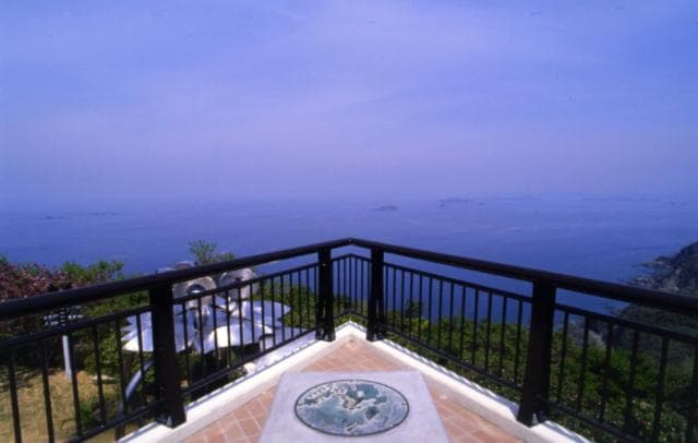 日本最西南端に位置する標高198メートルの権現山。東に天草灘、西に五島灘、南に果てしなく広がる東シナ海を一望することができ、春先にはシベリアに渡る鶴の群れに出会え、隣接の椿公園には自生ヤブツバキ1万数千本も咲き誇ります。